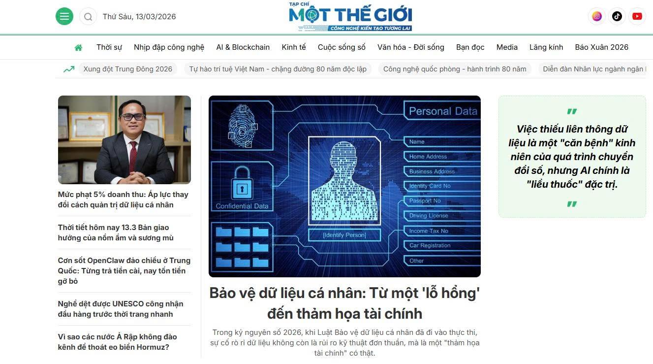 Ngày 13/03/2026, Luật sư Lưu Xuân Vĩnh – Giám đốc điều hành Công ty Luật TNHH Asia Legal đã có buổi trả lời phỏng vấn chuyên sâu trên báo điện tử Một Thế Giới. Nội dung buổi trao đổi tập trung vào các chế tài xử phạt theo Luật Bảo vệ dữ liệu cá nhân và những tác động thực tế đến doanh nghiệp.